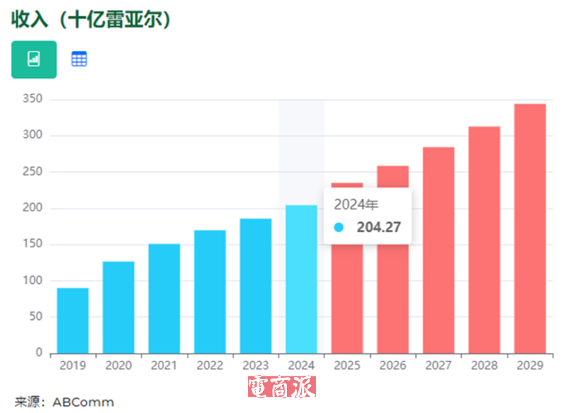 2024年巴西电商销售额达2043亿雷亚尔 图源:ABComm