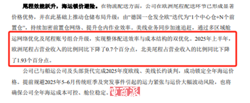 数据显示,致欧通过“中心仓+前置仓”模式优化欧洲仓储网络,提升尾程配送效率。欧洲及北美尾程费用占营业收入比例分别同比下降0.7和1.93个百分点。
