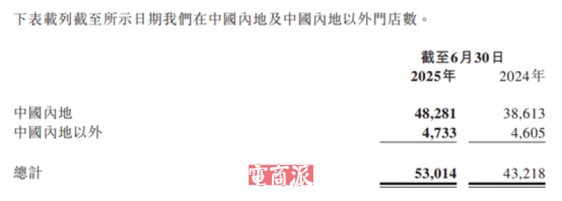 截至2025年6月30日,蜜雪冰城已在全球(中国及海外12个国家)构建起超53000家的门店网络,其中4733家分布在中国内地以外的地区。
