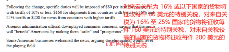 对此,特朗普表示,暂停最低免税限额措施将有助于美国降低贸易逆差。而特朗普的贸易顾问纳瓦罗则认为,此举将为美国国库每年增加100亿美元的收入。