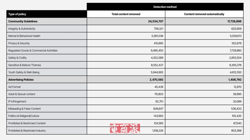 在内容治理方面,TikTok在半年内因违反社区准则移除近2450万条内容,比上一期增加15%。其中,涉及青少年安全和心理健康的违规内容移除数量显著提升,自动检测能力也大幅增强。针对心理与行为健康问题的自动检测比例已由2023年的49%提升至90%,青少年安全相关的自动检测比例则从38%提高至77%。