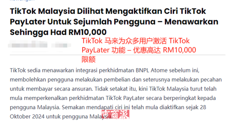 TikTok马来西亚上线先买后付功能 图源:amanz.my