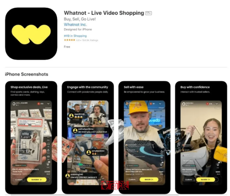 值得一提的是,在对TikTok Shop至关重要的美国市场,也涌现出一位“直播电商新贵”——Whatnot。