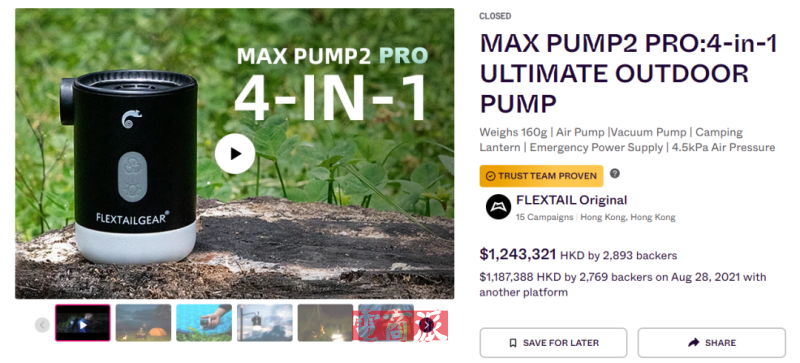 Flextail户外泵预售爆单 图源:Indiegogo