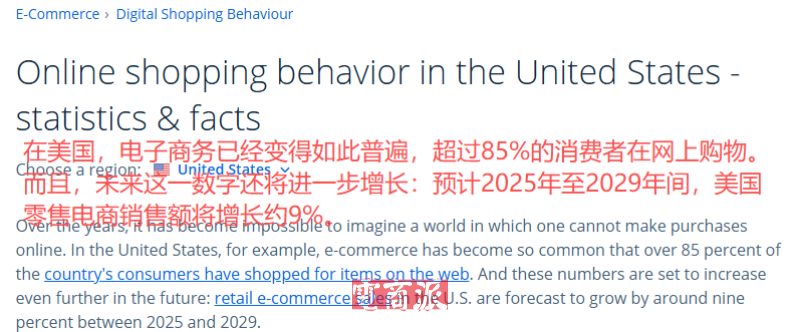 美国近九成消费者会在线上购物 图源:Statista