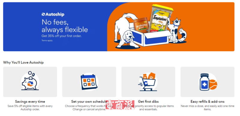 这项业务是Chewy的一项自动送货服务,用户可自行设置需要自动送货的产品及送达时间。其优势在于,相比自己选购下单,Autoship能享受部分商品折扣,获得热门商品优先购买权,且无需额外订阅费。