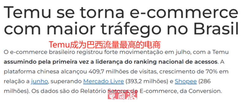 Temu成为巴西访问量最高的电商平台 图源:e-commerce brasil
