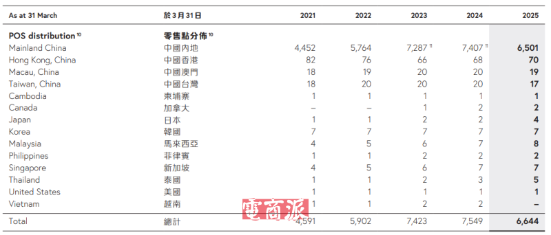 另一边,周大福是国内出海较早,也相对成熟的珠宝品牌。2007年,周大福进入马来西亚,迈出零售出海的第一步。2009年,深入东南亚市场,在新加坡开出首家珠宝店。截至今年3月底,周大福在海外拥有37家门店,其中东南亚地区占有23家门店,海外市场零售值同比增长8.5%。