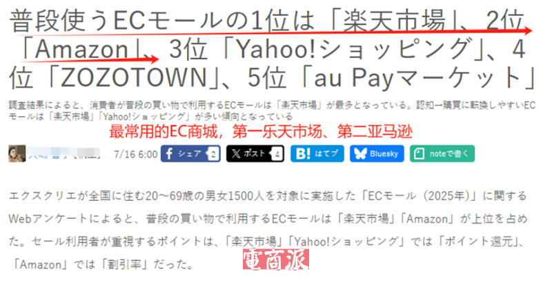 乐天购物和亚马逊在日本最受欢迎 图源:netshop