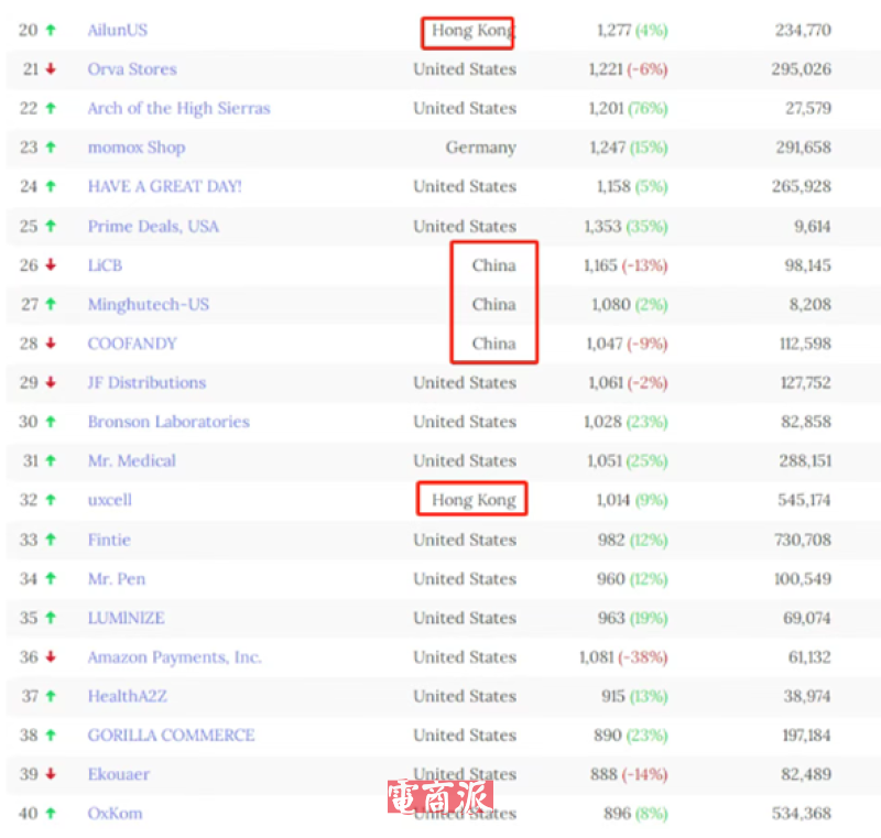 多名中国卖家跻身亚马逊顶级卖家行列 图源:Markerplace Pulse