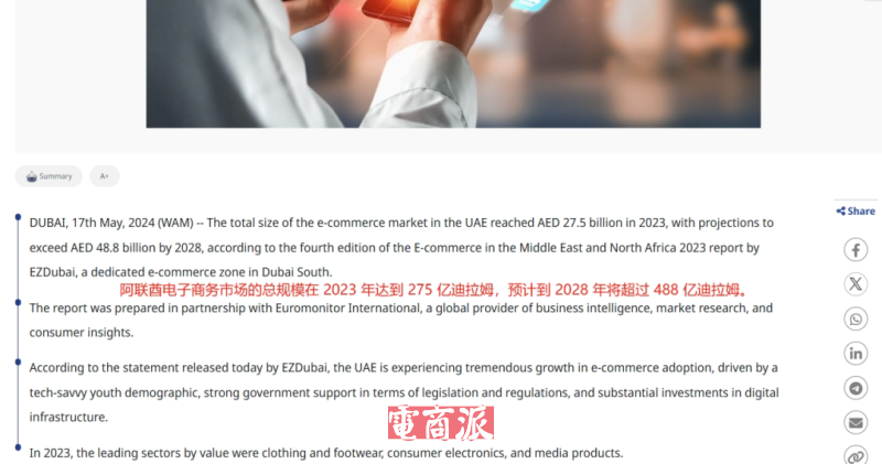 相关预测数据显示,预计到2028年,阿联酋电商市场规模超过480亿迪拉姆(约130.7亿美元),成为全球增长最快的市场之一。