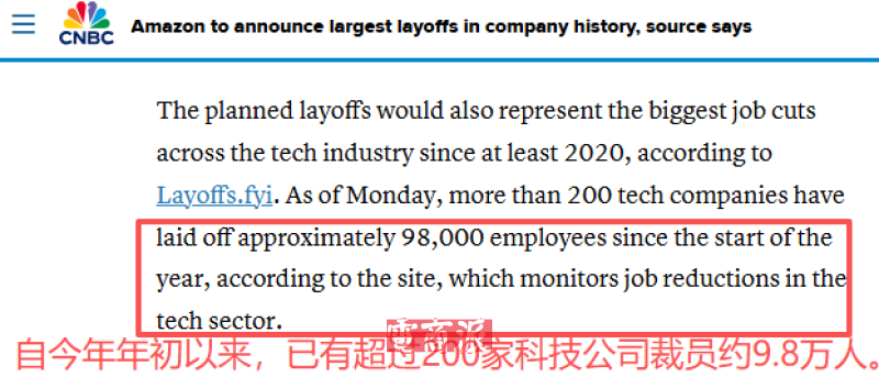 截至本周,全球已有超过200家科技公司在2025年共裁员约9.8万人,但亚马逊本次裁员依旧是至少自2020年以来科技行业最大规模的裁员。