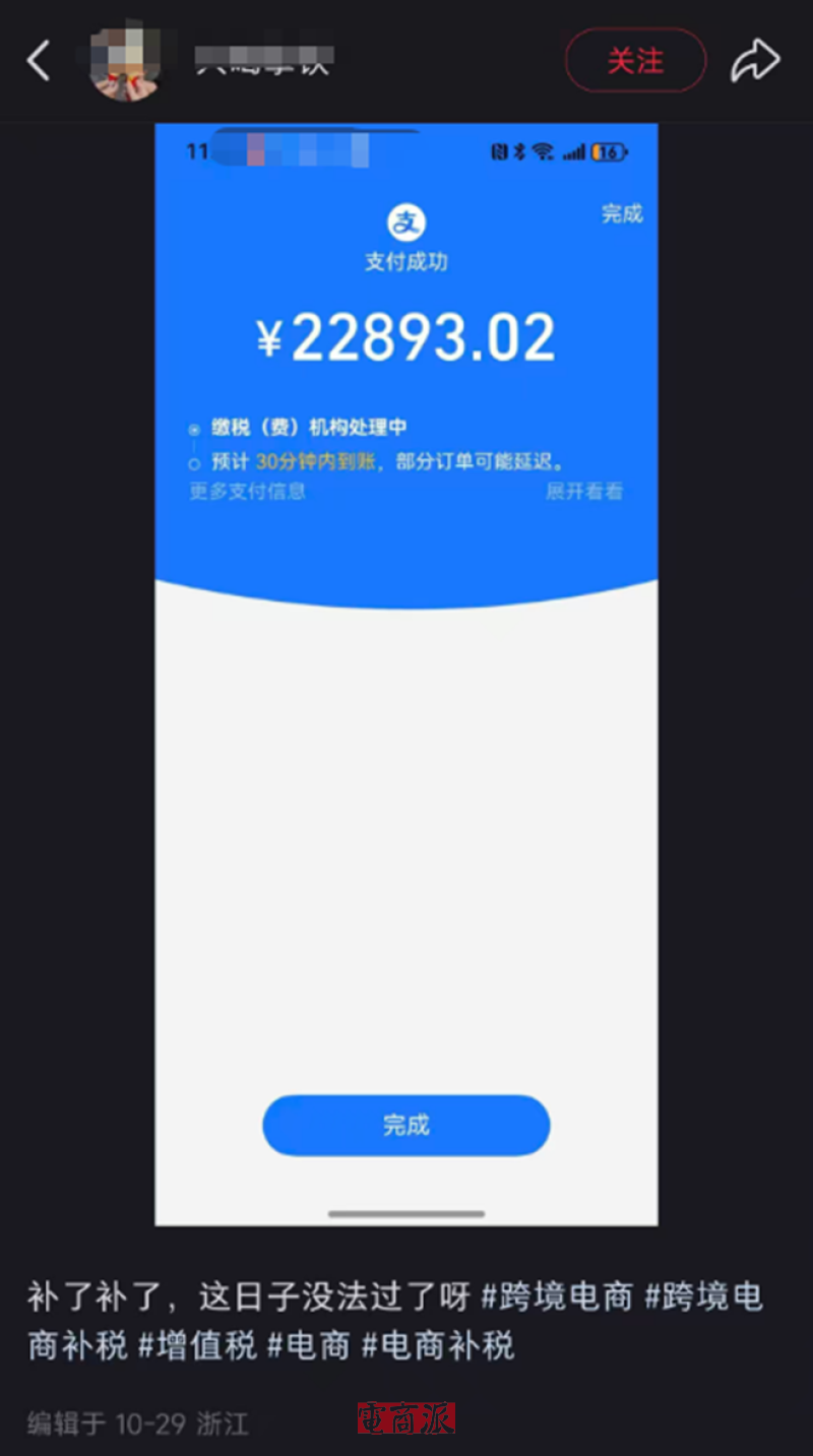 一位浙江的跨境卖家晒图称自己向税务局补了2万多的税,更有网友表示:“我刚给我们公司算了一下,企税+增值税要补600多万。”