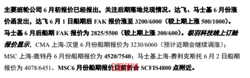 美关税波动导致6月美线运费大幅推涨 图源:华泰期货