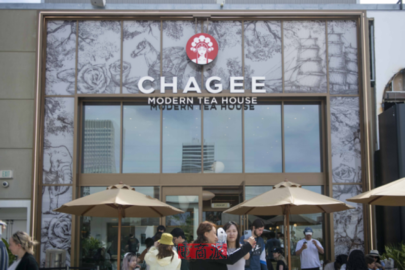 其中霸王茶姬的打法十分“高调”,4月上市后不久,霸王茶姬就在美国开出首店,位于美国洛杉矶人气商场Westfield Century City。