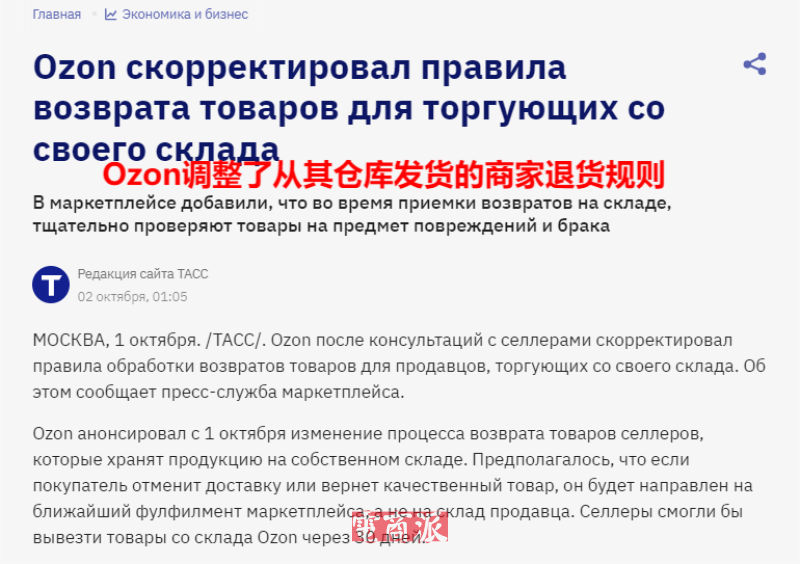 Ozon调整退货政策 图源:tass.ru