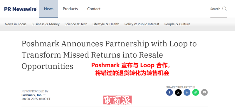 Poshmark联手Loop推出转售服务 图源:PR Newswire