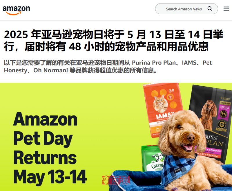 亚马逊今年5月举办宠物日促销 图源:aboutamazon