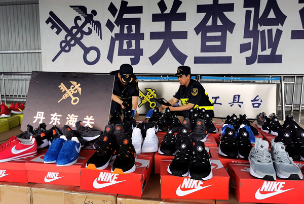 近期,海关又查获出口侵权名牌运动鞋2173双