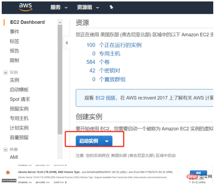 (1) 首先进入EC2的控制面板,点击“启动实例”,选择Ubuntu Server 18.04 LTS (HVM), SSD Volume Type,64位(x86)