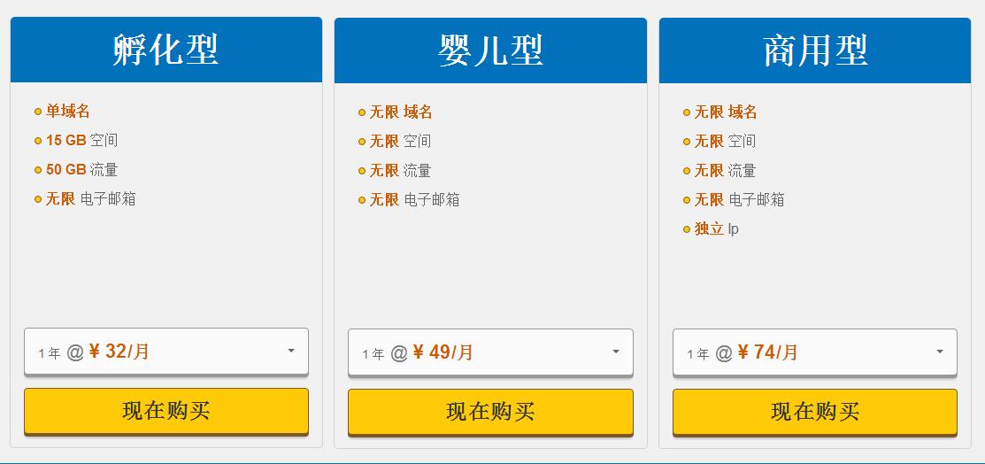 HostGator服务商提供的主机产品主要有美国的主机和香港的主机,并且支持Windows和Linux两种系统,并且这两种系统都提供三种不同的配置的方案分别是孵化型、婴儿型和商用型。