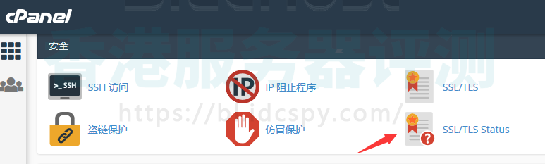 2、在cPanel控制面板中找到“SSL/TSL Status”选项,然后点击进入: