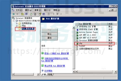 (1)打开iis信息服务管理器,然后,需要开启web服务扩展,允许php扩展。