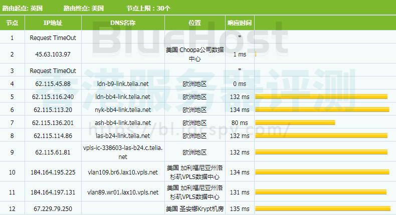 以上就是对BlueHost SSD VPS云主机优势进行简单分析,相比传统的美国VPS来说,其优势还是很明显的,而且在美洲、欧洲等地访问速度也很快,适合外贸内网站建设。