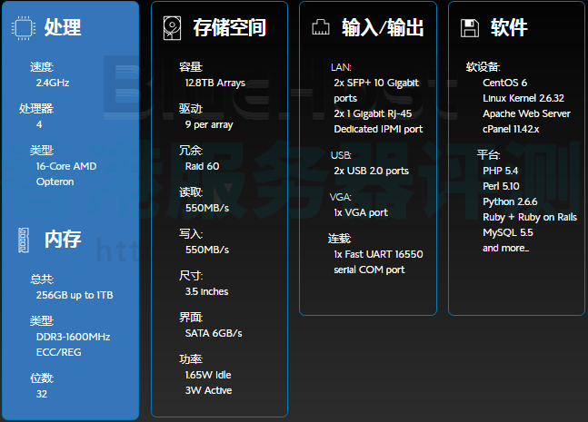 BlueHost SSD VPS云主机所在服务器采用最新AMD多核处理器,最高1TB内存,纯SSD硬盘存储,而且基于KVM构架和OpenStack管理,整体性能配置都比较高端。