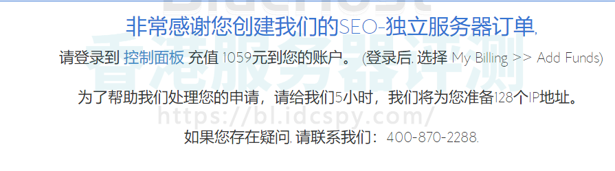 以上是在BlueHost中文站购买BlueHost站群服务器的过程,这次购买教程和我们购买虚拟主机不一样,所以大家一定要按照教程操作。最后再次提醒大家在充值前联系客服并告诉他们您是由我们主机侦探推荐的客户,这样可以享受首单700元一个月的独家优惠。