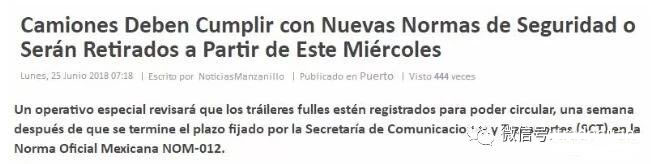 2018年6月26日,NOM-012-SCT-2-2017规定开始实施,对不同集装箱拖车做出了具体的重量和尺寸限定,导致大批拖车无法满足标准要求而进行运输活动。