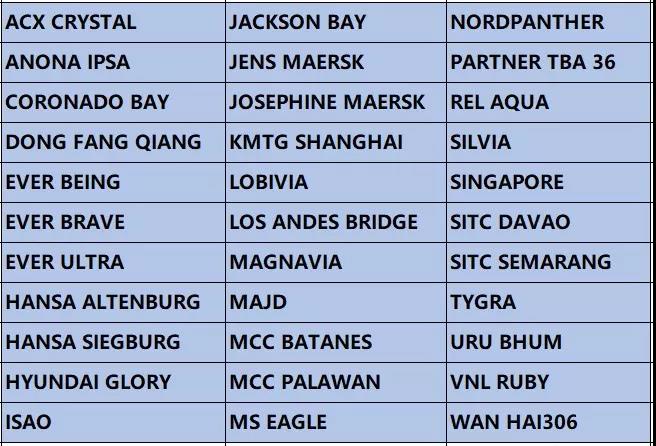 以下是前往马尼拉港口可能受影响的集装箱船舶名单: