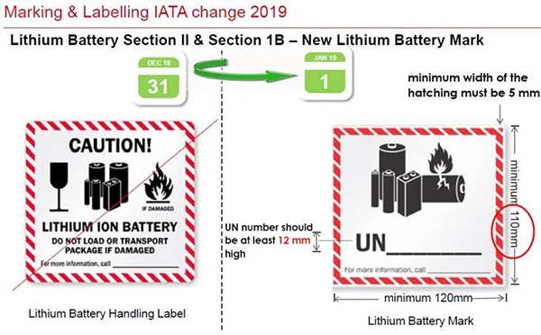 2019.01.01开始必须使用新的锂电池操作标签和第9类标签,旧标签作废。