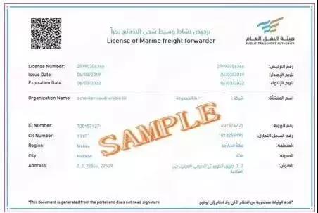 根据沙特港务局(Saudi Port Authority)在第 26 条中的规定,所有沙特收货人或通知人,如果为当地货运代理,则必须获得由公共运输局(Public Transport Authority (PTA))签发的货运代理许可证,否则由此引起的罚金或不能清关的风险由客户自行承担。