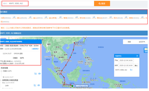 根据维运网船期数据显示,“KMTC JEBEL ALI”本航次将经泗水驶往香港,之后挂靠韩国光阳蔚山、釜山港等...