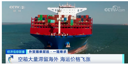 市场上大量缺箱导致航运运价飞涨,热门航线的价格涨幅更是夸张。郭某某拿了两张运价单给记者看,半年多的时间同一航线的运价翻了两倍。对于外贸企业来说,生产不能停,手持订单但大量货物却很难运出去,资金压力很大。业内预期集装箱和舱位紧缺现象还会持续。