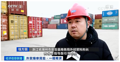 浙江省湖州市安吉县商务局外经贸科科长 钱方圆:我们会指导和引导企业用我们的信用保险的模式,来保障企业应对出货风险。