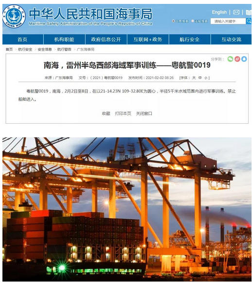 国际海运船期延误预警!2月2日-8日部分海域禁止船舶驶入。