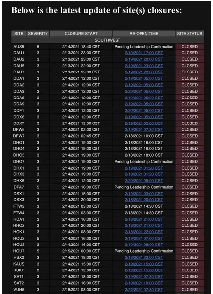 包括AUS5、DAU1、DAU2、DAU5、DAU7、DDA1、DDA2、DDA3、DDA8、DDA9、DDF1、DDX6、DDX7、DFW6、DFW7、DHO1、DHO4、DHO5、DHO7、 DHX1、DHX3、DHX5、DPA7、DSX1、DSX3、FTW3、FTW4、HDA1、HHO2、HOK1、HOU2、HOU3、HOU7、HSX2、KAUS、KSKF、SAT1、SAT2、VUH5、BNA2、BNA3、BNA5、BNA9、DKY2、DLR2、DNA1、DTN4、DTN8、HAU1、HBN1、HLI1、HLO1、MEM1、MEM2、MEM3、MEM4、MEM5、MEM6、ABE2、ABE3、ABE4、ABE5、BWI1、DJE6、MDT2、PHL6、PHL7、RDG1、RIC1、RIC2、TEN1、VUCT、VUGU、VUPJ、VUPO。