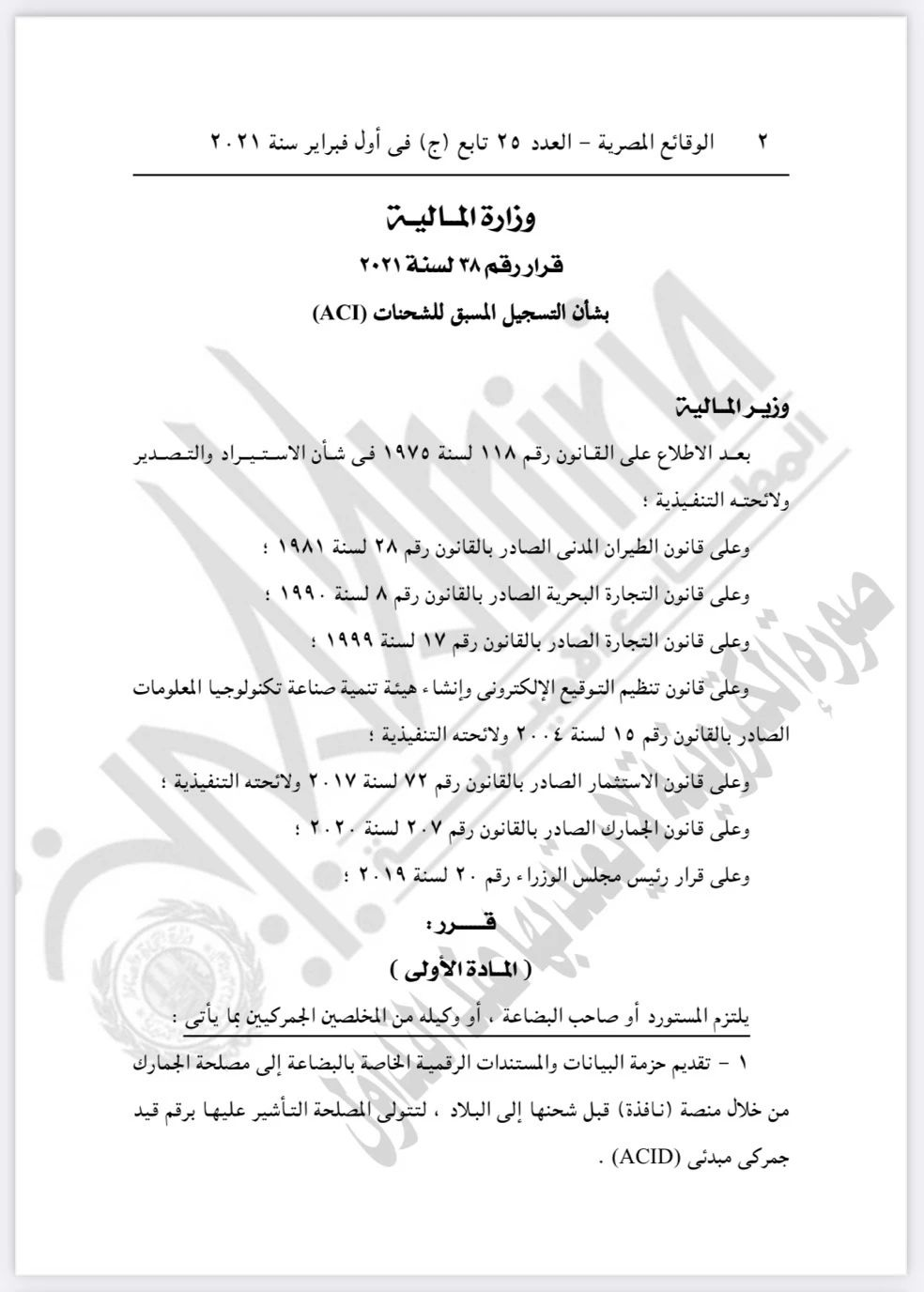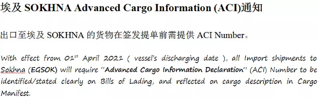 近日,埃及相关部门宣布将在埃港口推行 Advance Cargo Information (ACI)系统,