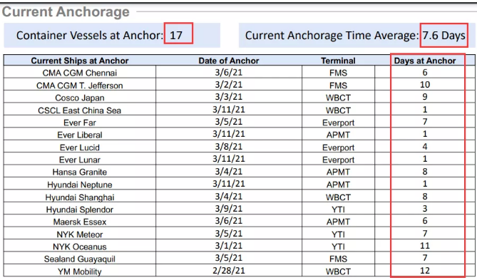 这表明拥堵情况没有实质性改善,但也没有恶化。拥堵会持续多久,在很大程度上取决于从现在到8月份高峰季节开始的进口数量。