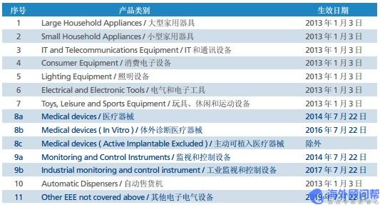- 医疗设备和监控设备及其零部件自2014年7月22日起应符合ROHS2.0;