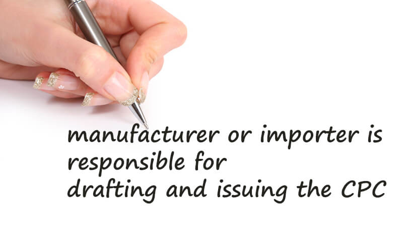 该玩具制造商或进口商负责起草和发布玩具CPC。制造商或进口商可根据第三方检测的合格结果自行起草玩具CPC。进口商必须为海外制造的产品签发 CPC,美国制造商必须为国内制造的产品签发 CPC。