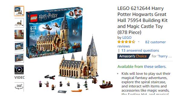 7、LEGO ‘Harry Potter’ Hogwarts Great Hall Building Kit