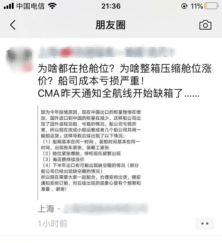 提醒:现在大家都需要一起配合,合理安排出货计划,提早通知安排订舱,对后续出现的现象有相应的预期和准备。