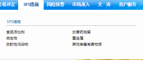 在技贸网首页选择SPS措施,可根据需求不同选择不同的项目。我们以食品添加剂为例。