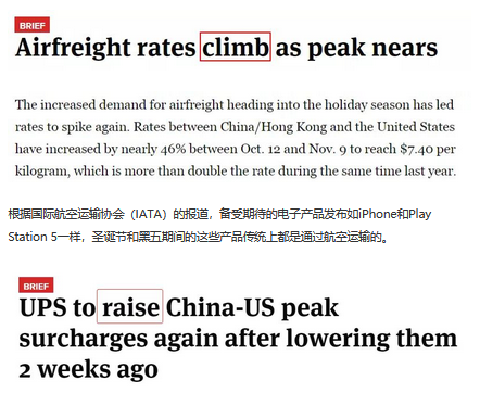 疫情期间对空运的需求激增,加上旺季的需求,促使UPS/Fedex/DHL等再次提高了从中国大陆到其他国家的货物收费。