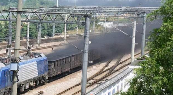 那还有一些喜欢打破砂锅问到底的圈友就要问了,这一节节敞篷车装着煤炭在路上跑,遇上雨你不怕,遇上刮风可怎么办?沿途都得吃煤灰吗?小圈觉得,你这种担心是很有必要的,毕竟下面这张图就是没有采取任何措施的运煤车,可谓人见人不爱,花见花不开,煤车经过,片甲不留。