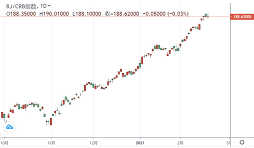 最近包括铁矿石,棉花、原油、铜,天然气等全球资源商品大幅走高,这些都是澳洲主要的出口商品,CRB商品价格也开始一路爆升,
