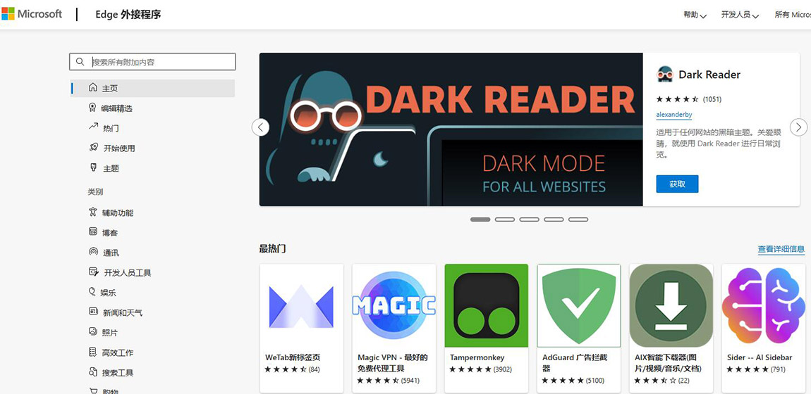 我们安装好Edge浏览器后,打开浏览器,在浏览器右上角有点击三个小点,弹出一个下拉菜单,找到扩展并打开。点击管理扩展,再点击获取Microsoft Edge扩展,输入“wetab”然后找到Chatgpt扩展组件,点击安装。等待5秒钟安装完成。